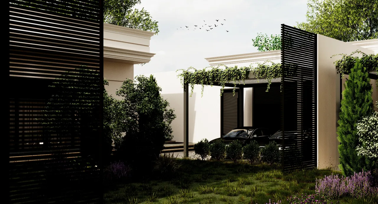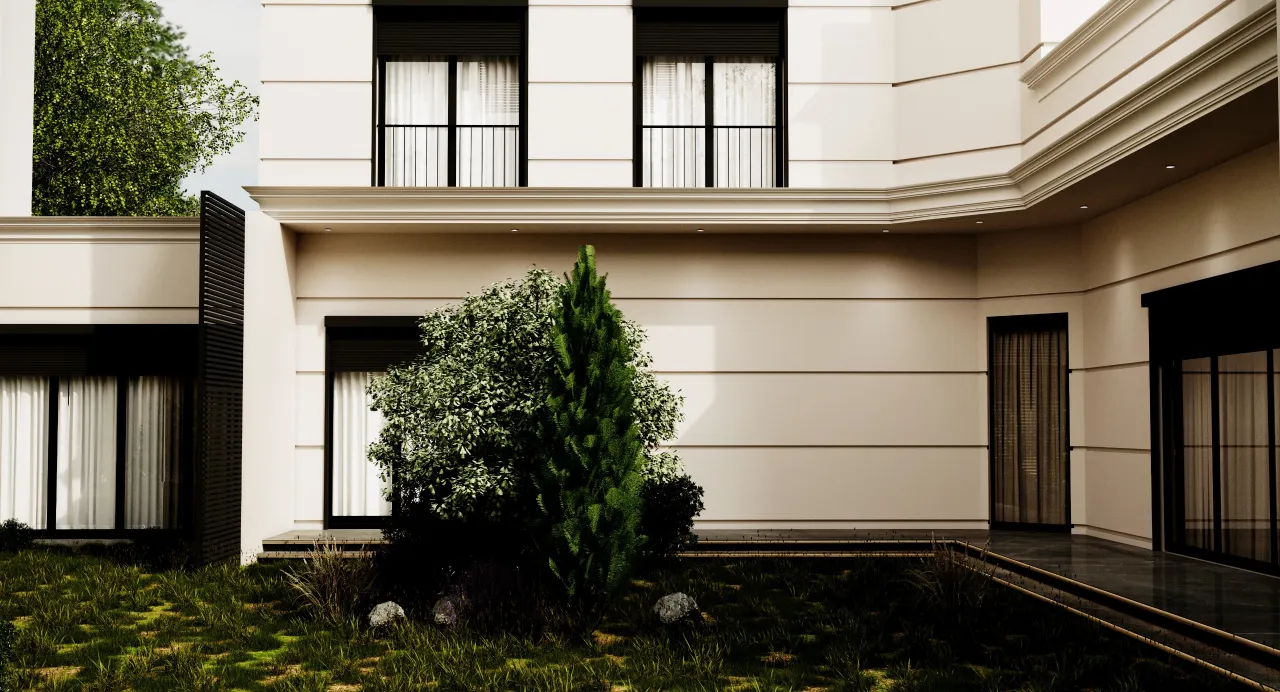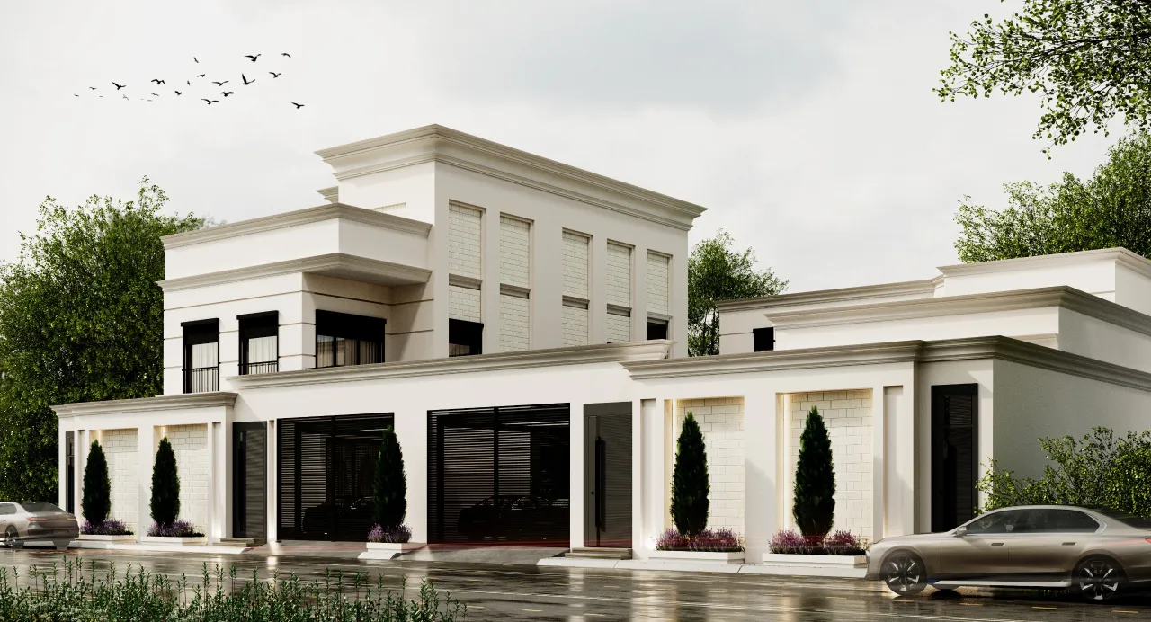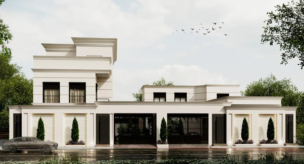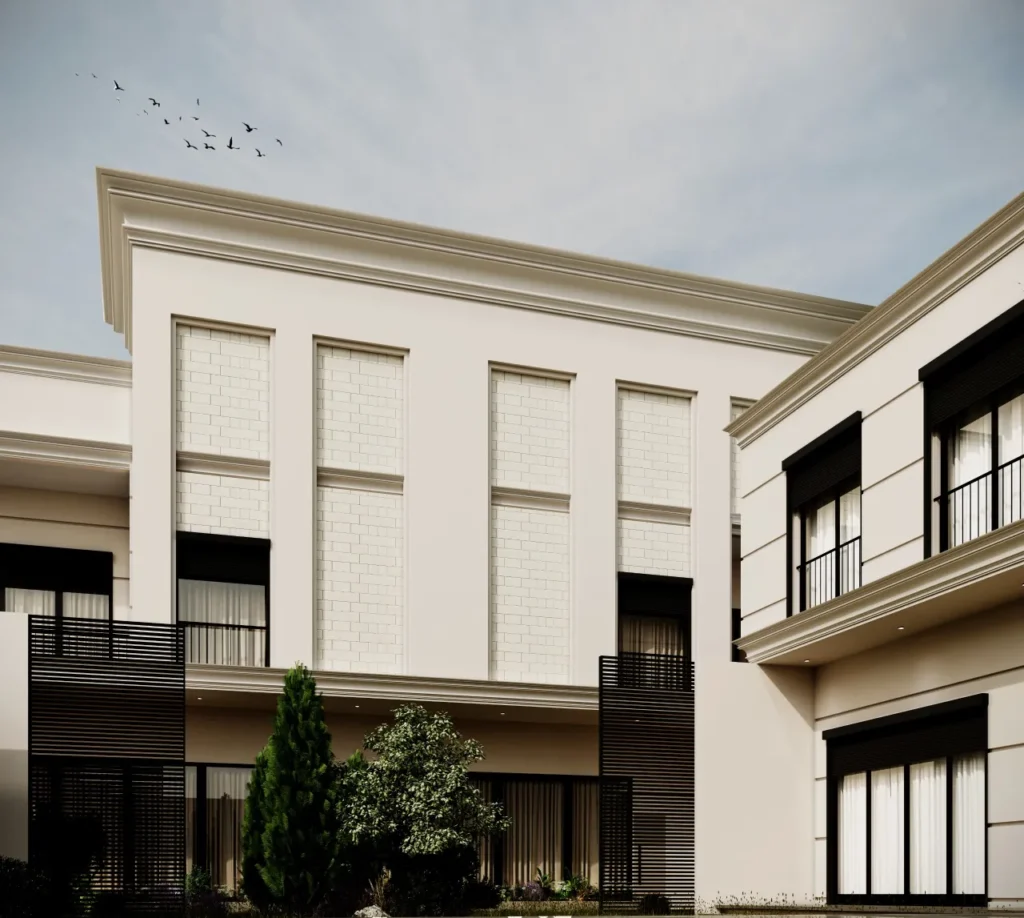 The villa’s facade was designed in the neoclassical style, characterized by simplicity and elegance, with clean and straightforward lines. The design also incorporated green areas, with lush spaces allocated in the center of the villa to add a vibrant and refreshing atmosphere.