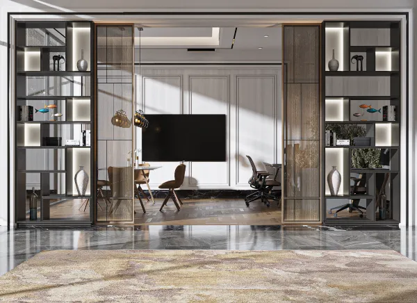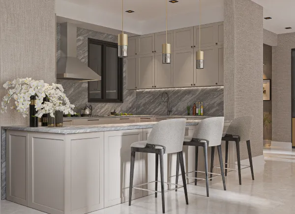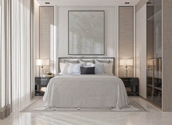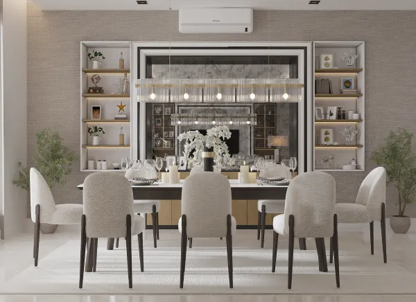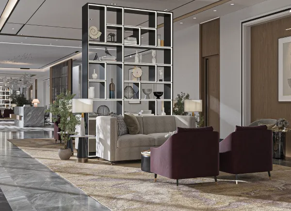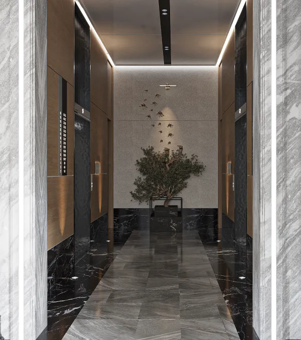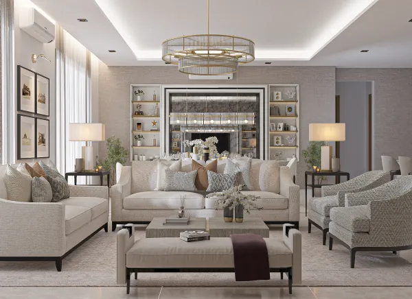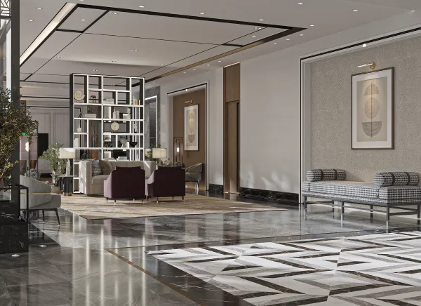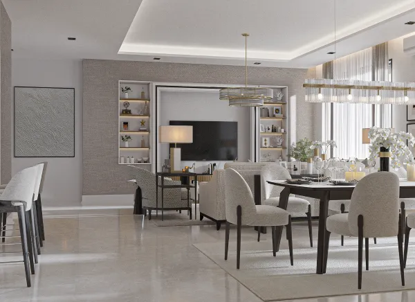 A luxury residential apartment project in Jeddah, where a model of residential apartments, reception, and public facilities has been designed. The design is luxurious and elegant, featuring a hotel-like style that adds opulence to the residents, achieved through the use of diverse high-quality materials.