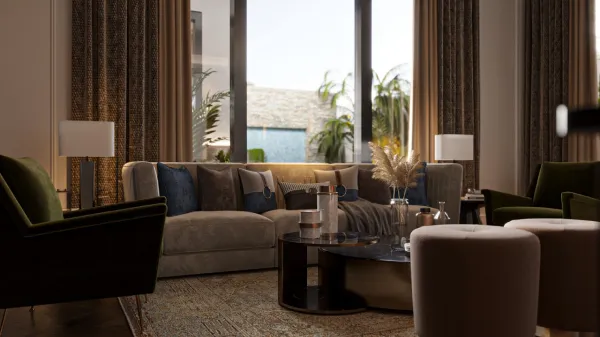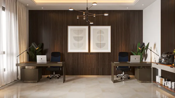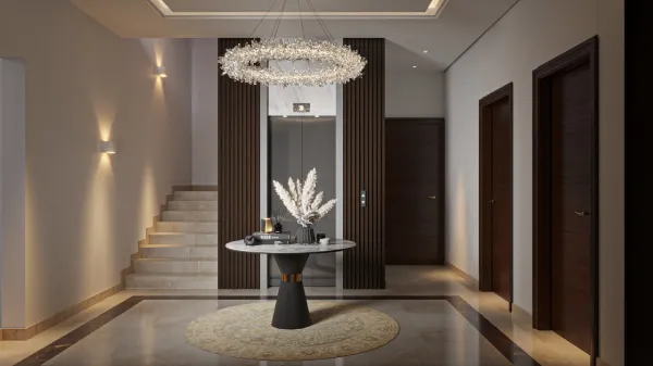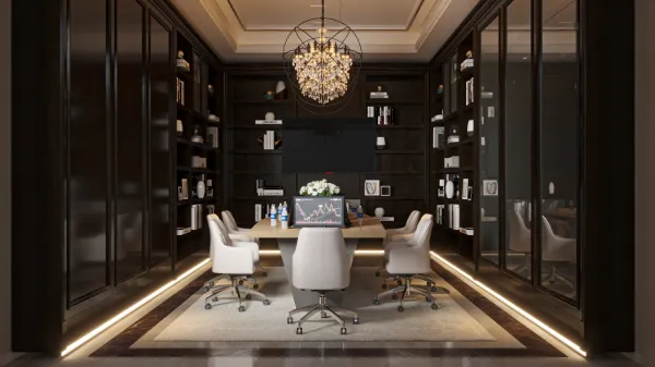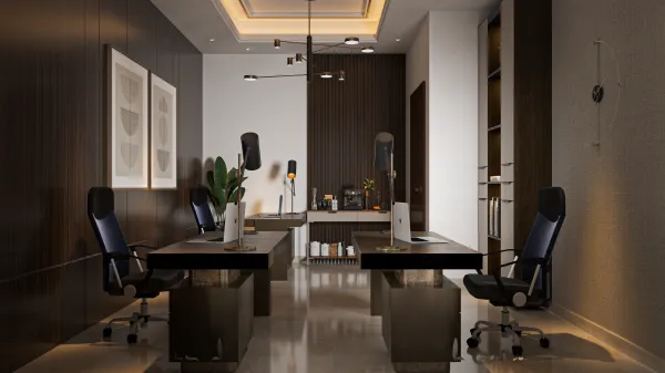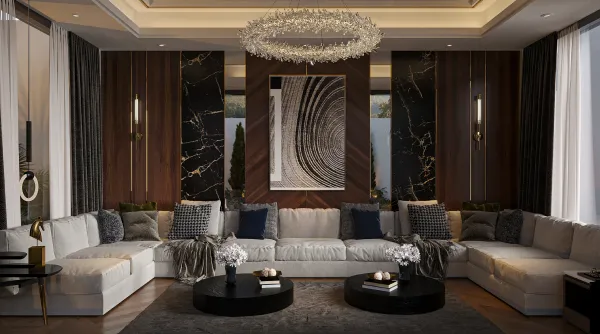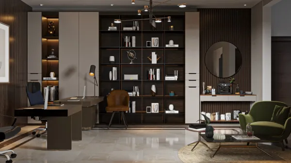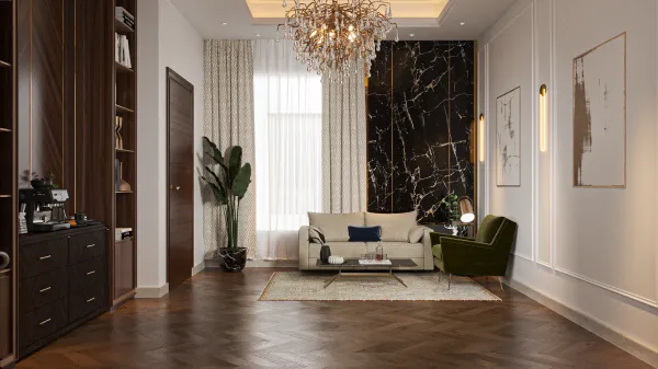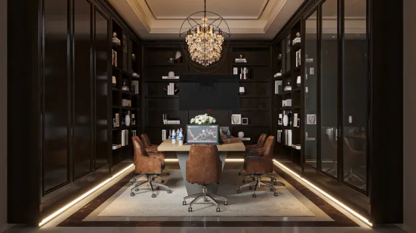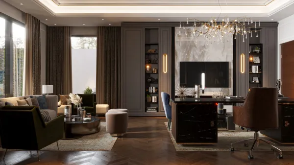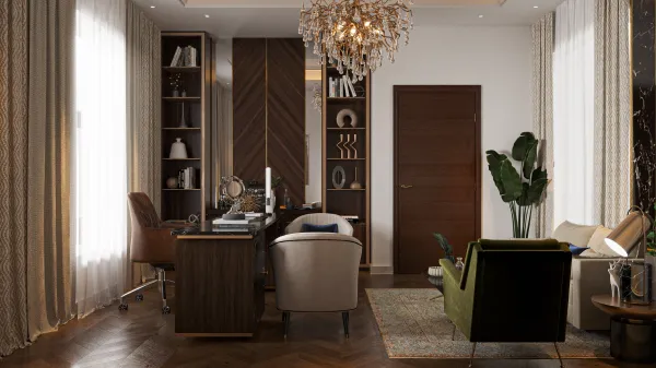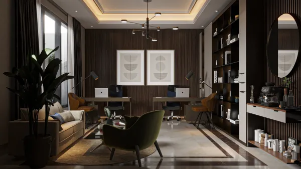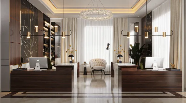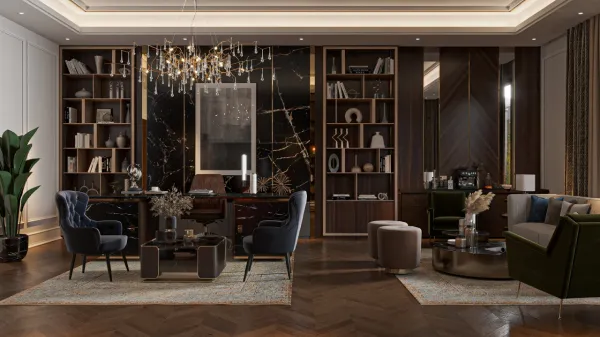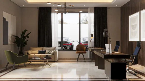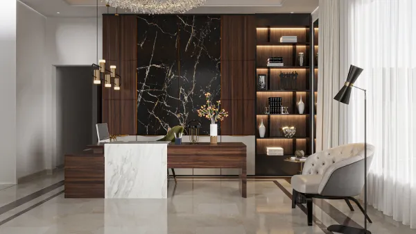 BA OTHMAN OFFICE 340 sqmJEDDAH, KSA The design of these offices was a unique challenge, transforming a residential villa into a luxurious office with an elegant design. Walnut wood, marble, and velvet were used to add a touch of opulence and sophistication to the space.