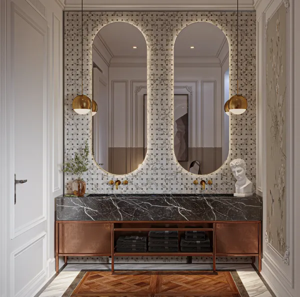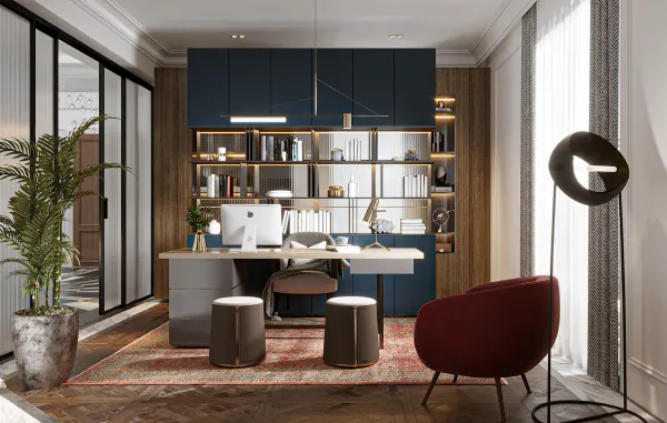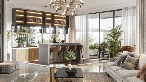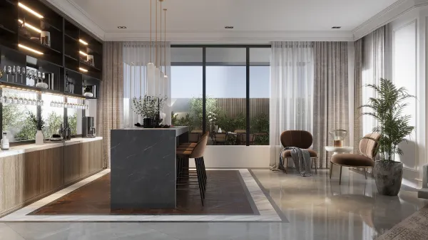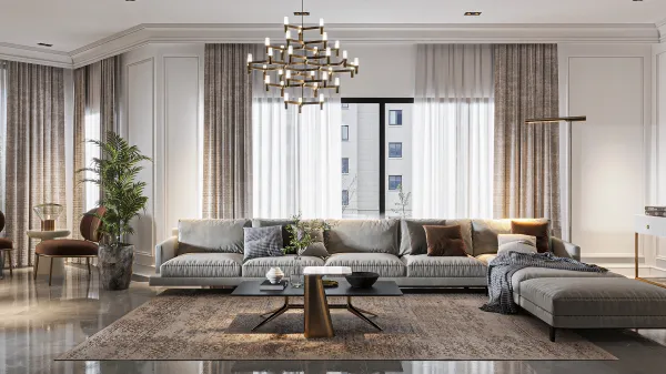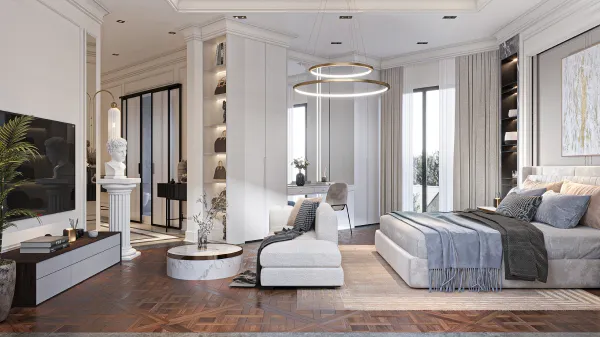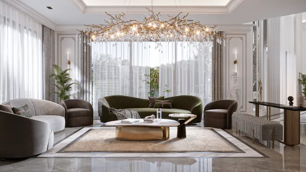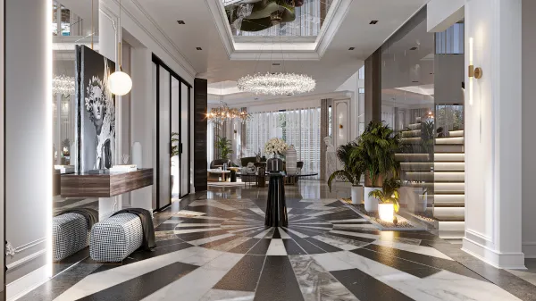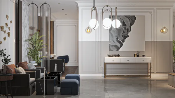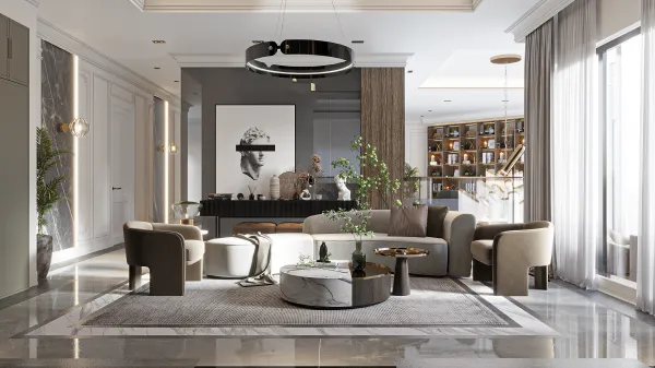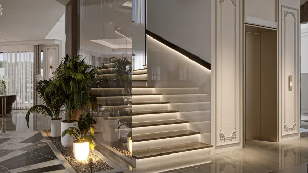 This villa is located in Jeddah, featuring an innovative and modern design. Various colors were incorporated, and the neoclassical design was interpreted in a creative way.