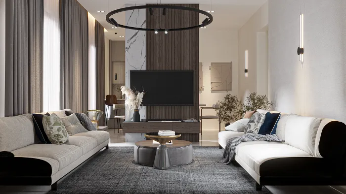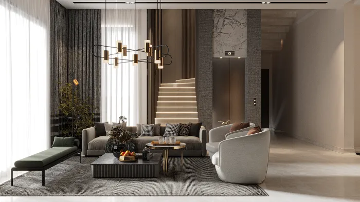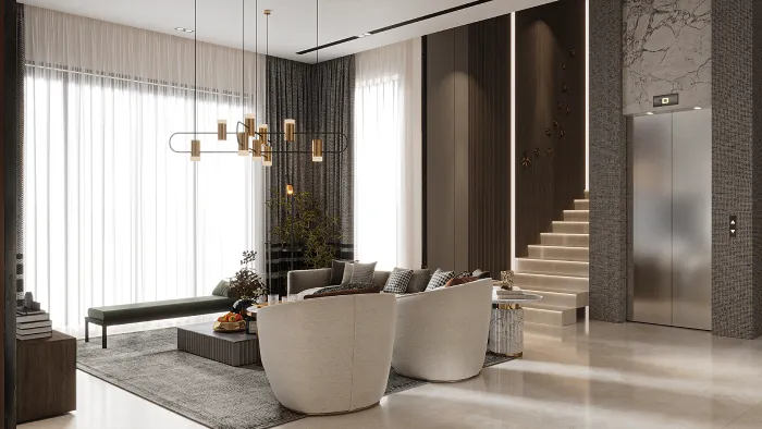 OZBAK VILLA 350 sqmJEDDAH,KSA This cozy villa in Jeddah boasts a modern design that cleverly maximizes its compact space, featuring warm colors that create a comforting atmosphere.